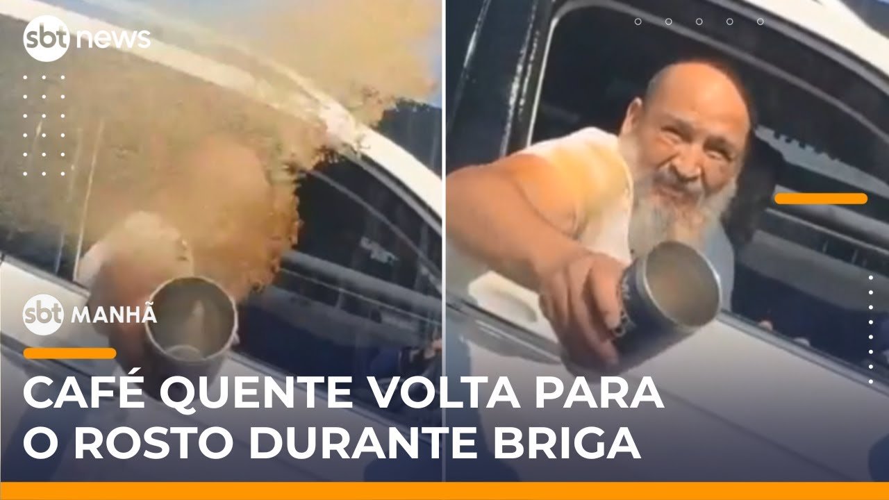 Uma briga de trânsito nos Estados Unidos terminou com uma cena inusitada. Um passageiro no banco da frente tentou jogar café quente no ocupante de outro carro, mas o vento fez o líquido voltar direto para o seu próprio rosto. O flagrante circula nas redes sociais e viralizou como exemplo de quando o “feitiço vira contra o feiticeiro”.