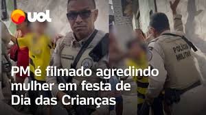 Imagens que circulam na internet mostram o momento que o PM discute com uma mulher e, na sequência, a golpeia com um tapa no rosto. A ocorrência foi no bairro de Pirajá durante comemorações de Dia das Crianças em uma comunidade.