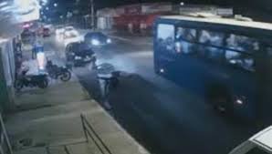 Duas câmeras de segurança registraram o momento em que dois adolescentes caem de um ônibus em movimento no município de Novo Gama (GO), no Entorno do Distrito Federal. O caso aconteceu na noite dessa quarta-feira (22), por volta das 19h, na Rua 43, no bairro Parque Estrela Dalva VI.