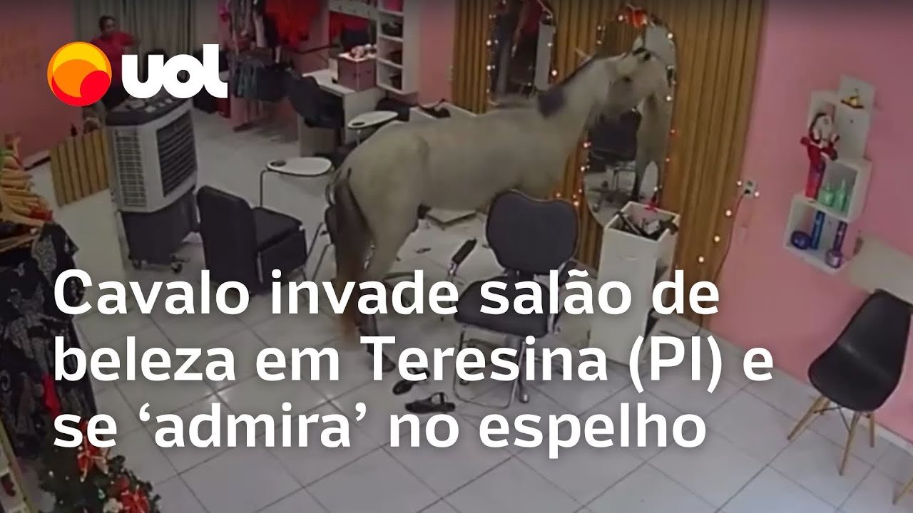 Um cavalo entrou em um salão de beleza e assustou clientes na terça-feira (11), em Teresina, no Piauí. O vídeo inusitado viralizou nas redes sociais.
