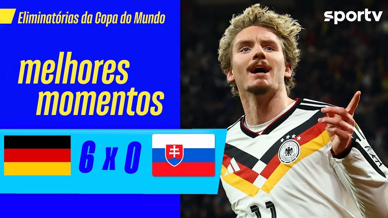 A Alemanha garantiu sua participação em mais uma Copa do Mundo – e em grande estilo. A tetracampeã Mundial atropelou a Eslováquia, goleando por 6 a 0 em confronto direto por uma vaga no Mundial, nesta segunda-feira, em Leipzig. Sané marcou dois gols, e Woltemade, Gnabry, Baku e Ouédraogo também balançaram as redes. Lá vêm eles de novo!