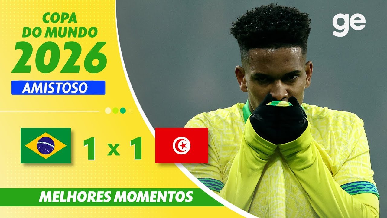 Brasil joga mal e empata com a Tunísia em amistoso. Seleção brasileira sai atrás, Estêvão empata de pênalti, e Paquetá desperdiça cobrança no segundo tempo.
