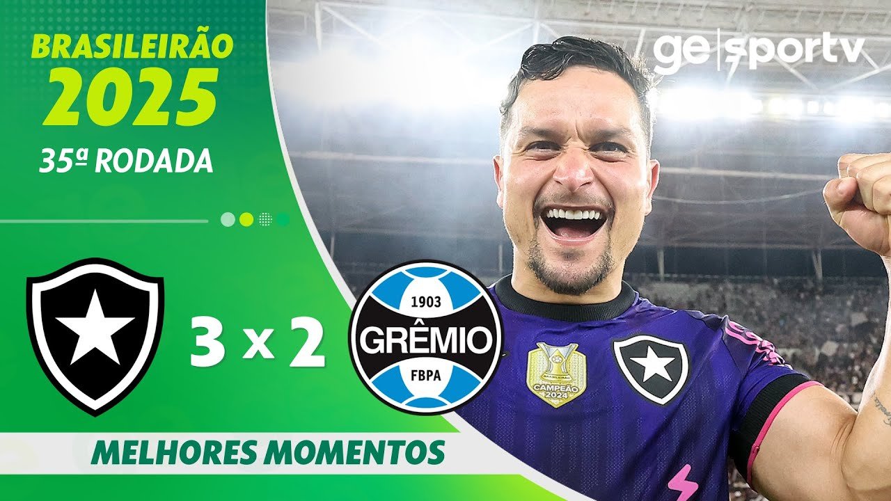 Em jogo movimentado, Botafogo vence o Grêmio e se garante na Libertadores 2026. Fogão faz 3 a 2 no Nilton Santos e confirma matematicamente, no mínimo, vaga na fase prévia do torneio.