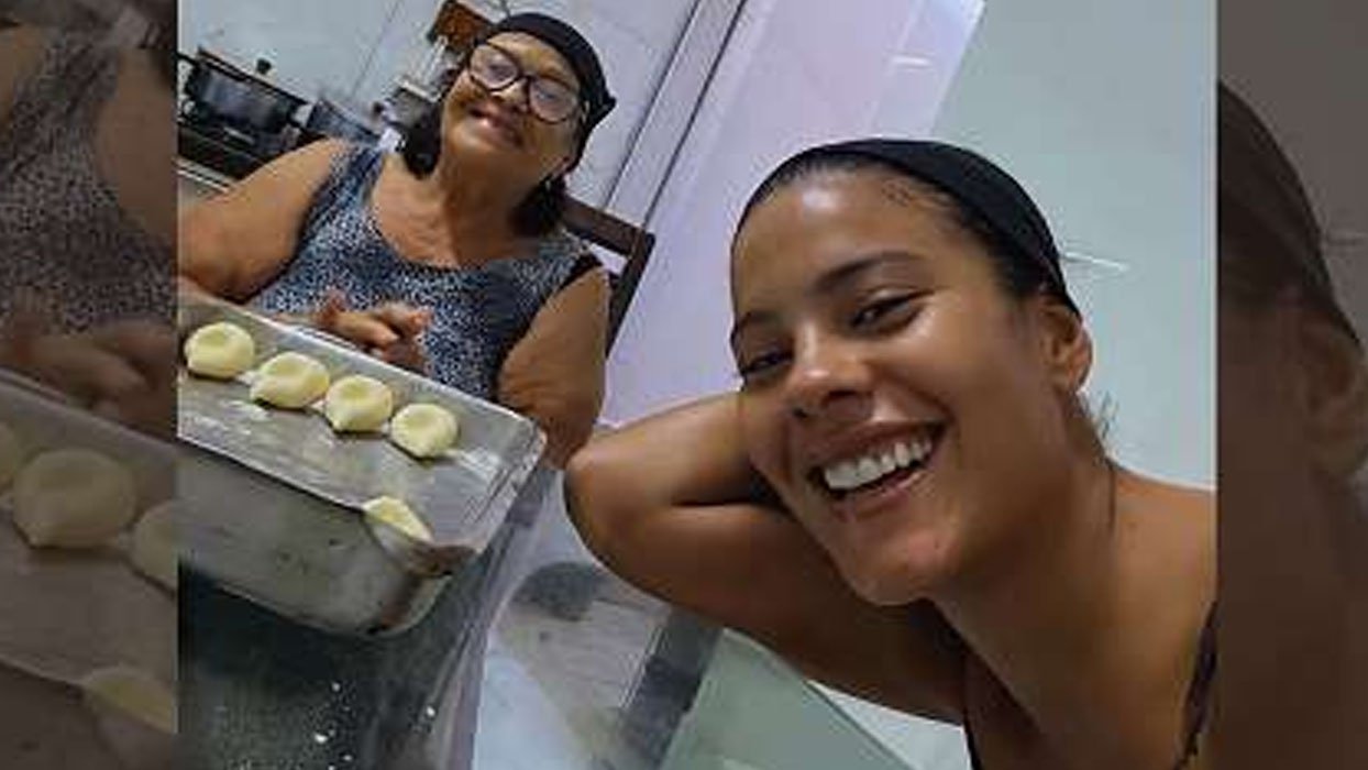 Bella também mostrou que colocou a mão na massa para preparar bolo de queijo, além de registrar cenas comuns em famílias cuiabanas: cerveja, banana frita, peixada, presentes, camisa do Cuiabá e até um cochilo depois do almoço.