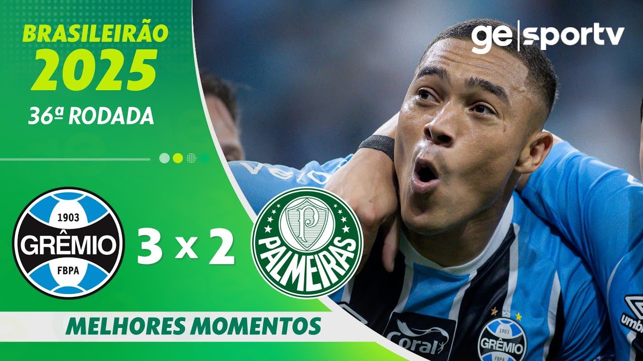 Grêmio vence em casa, atinge 46 pontos e deixa Palmeiras mais distante do título Tricolor acaba com riscos de Z-4 com vitória; Palmeiras sai na frente, mas perde o jogo e vê a diferença para o Flamengo subir para cinco pontos.