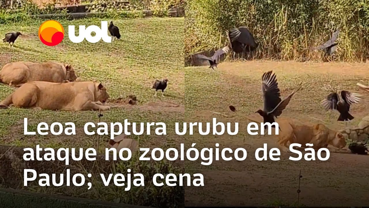 Uma visitante registrou um momento impressionante no zoológico de São Paulo, em agosto: uma leoa capturando um urubu diante dos visitantes.