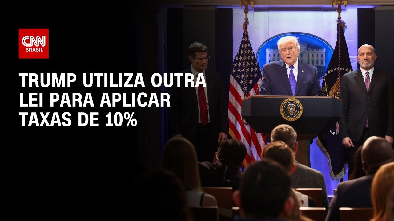 O presidente americano, Donald Trump, anunciou uma nova tarifa global de 10% nesta sexta-feira (20). Novo imposto foi uma resposta à decisão da Suprema Corte americana que suspendeu as taxas de importação impostas pelo republicano com base na lei de poderes econômicos de emergência internacional. Fonte: #CNNBrasil