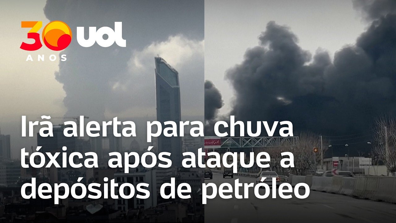 A capital do Irã, Teerã, amanheceu com nuvens de fumaça preta após ataque de Israel e EUA contra depósitos de petróleo.
