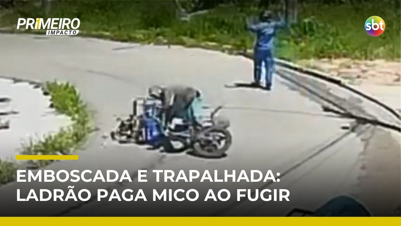 Um ladrão armou uma emboscada para assaltar um entregador em Itapevi, na Grande São Paulo, mas acabou pagando mico na hora da fuga. Segundo moradores, o crime foi planejado: os suspeitos fizeram um pedido em uma adega para atrair o entregador ao local. Ao chegar, o trabalhador foi ameaçado com o que parecia ser uma arma de fogo e teve os produtos roubados. O problema para o criminoso foi na fuga — ele não conseguiu pilotar a moto corretamente com a carga, deixou garrafas caírem e quebrou parte dos produtos. O caso reacende reclamações de moradores sobre a falta de segurança na região. Saiba todos os detalhes no Primeiro Impacto.