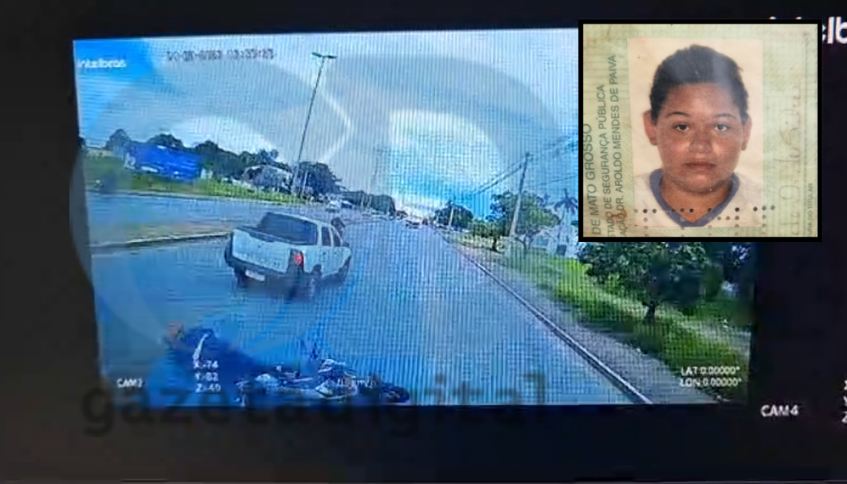 Uma câmera de segurança registrou o momento em que a motociclista Camila Carmem de Oliveira da Silva foi atingida por um caminhão e morreu na tarde de terça-feira (24). O acidente ocorreu na avenida Fernando Corrêa, em Cuiabá.