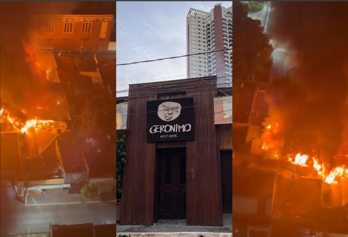 Um incêndio atingiu a casa noturna Geronimo West Music, no final da noite de quinta-feira (16), em Cuiabá. As chamas foram vistas do alto da cidade, assustaram a população e também colaboradoras da unidade. O fogo foi controlado na madrugada de sexta-feira (17) e a causa é apurada pelo Corpo de Bombeiros.