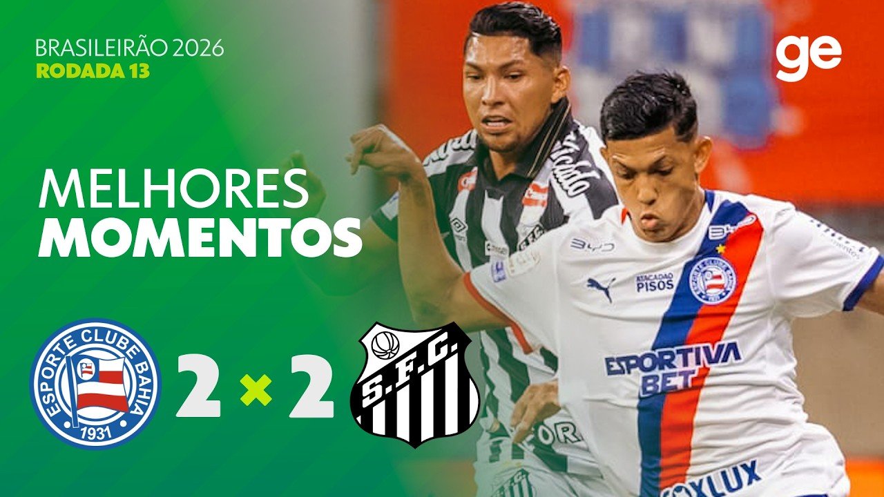 Na Arena Fonte Nova, Bahia e Santos empataram em 2 a 2 pela 13ª rodada do Brasileirão. Com dois gols de pênalti de Rollheiser, o Peixe abriu vantagem no placar logo no primeiro tempo. Na segunda etapa da partida, William José e Luciano Juba balançaram as redes para a equipe da casa. #bahia #santos #brasileirão